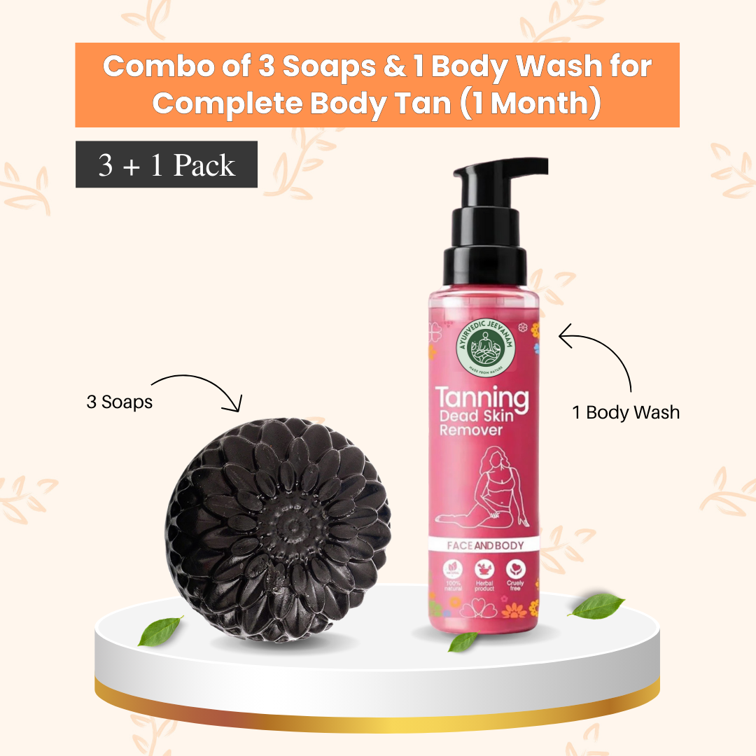 Combo of 3 Black Detox Charcoal Soaps & 1 Rose Body Wash To Remove Complete Body Tan